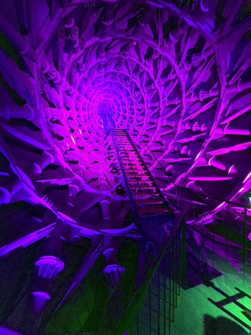 上部に上ると見える太陽の塔の腕の内部。トラス構造が見事です。万博時は通路になっていたそうです。