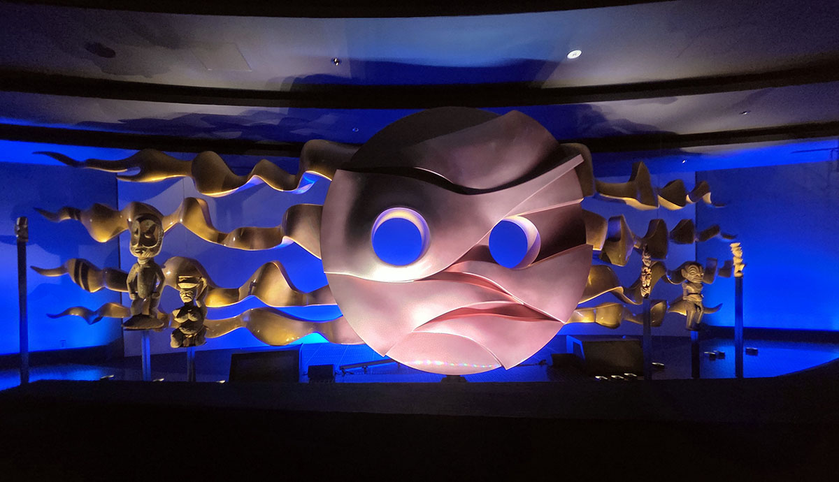 太陽の塔に入ると「地底の太陽」。オリジナルは万博後行方不明。これは復元です。