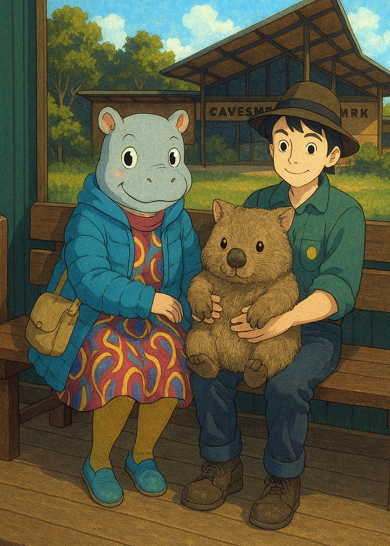 AIでジブリ風画像生成というのが話題になってるので、カバも試してみました。2024年8月にパースに行ったときの写真から。コアラにつかまったカバ。もはや逃れるすべもなさそう。コアラ怖い。同じ…