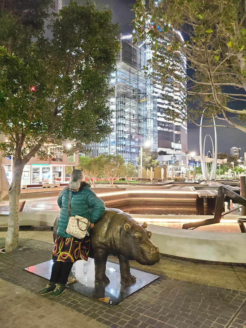 西オーストラリア州のパースにある小さな港。エリザベスキーと呼ばれています。ここにカバがいるという情報を得て探しに来ました。これがそのカバ。プレートによると、2歳のメスの子カバ。名前はマ…
